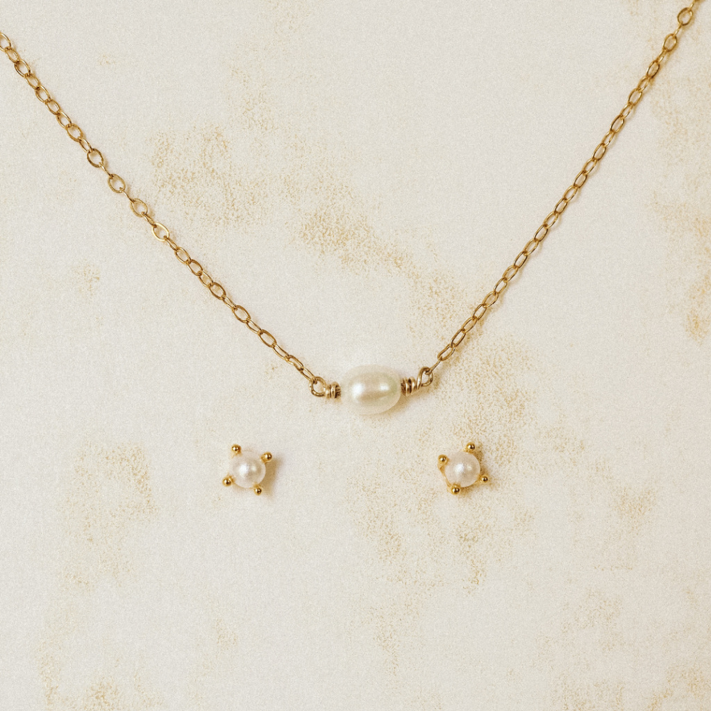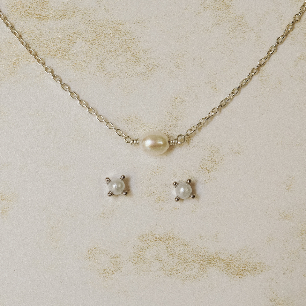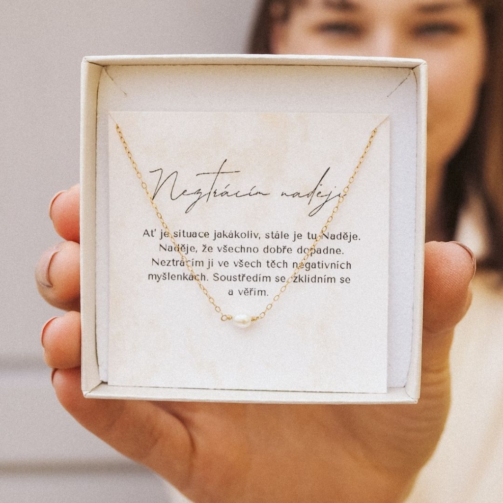 Krátký náhrdelník s jednou perličkou spolu s perličkovými náušnicemi vám budou připomínkou lepších zítřků. Protože kde je naděje, tam je i energie a život.