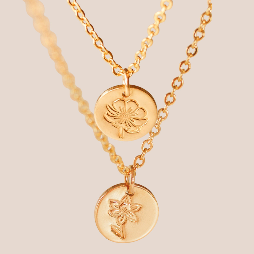 Dvojitý náhrdelník s ražbou květin měsíce narození