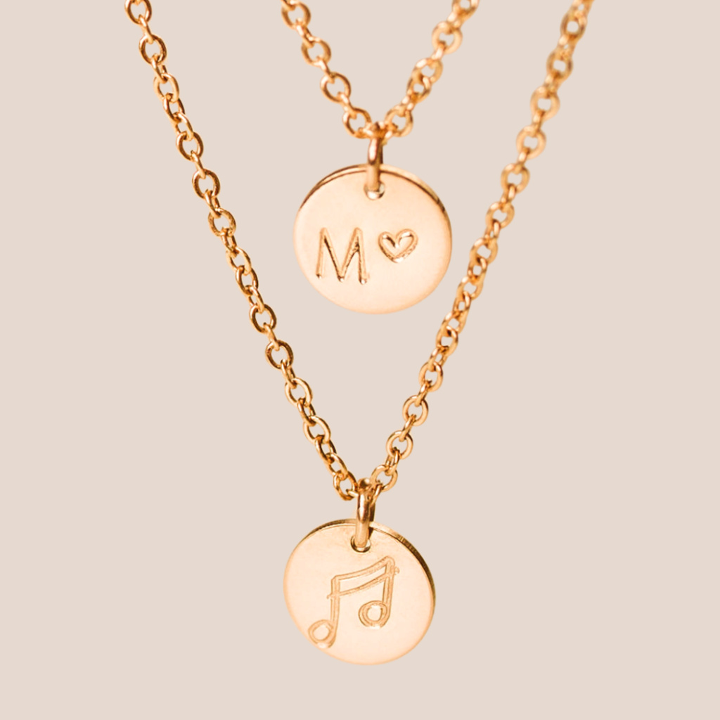 Nejvýraznější náhrdelník z naší dílny. Dva řetízky a dva medailonky s ražbou. Spojte symbol s datem, či znamením zvěrokruhu. Vložte do náhrdelníku to, co pro vás má životní význam.