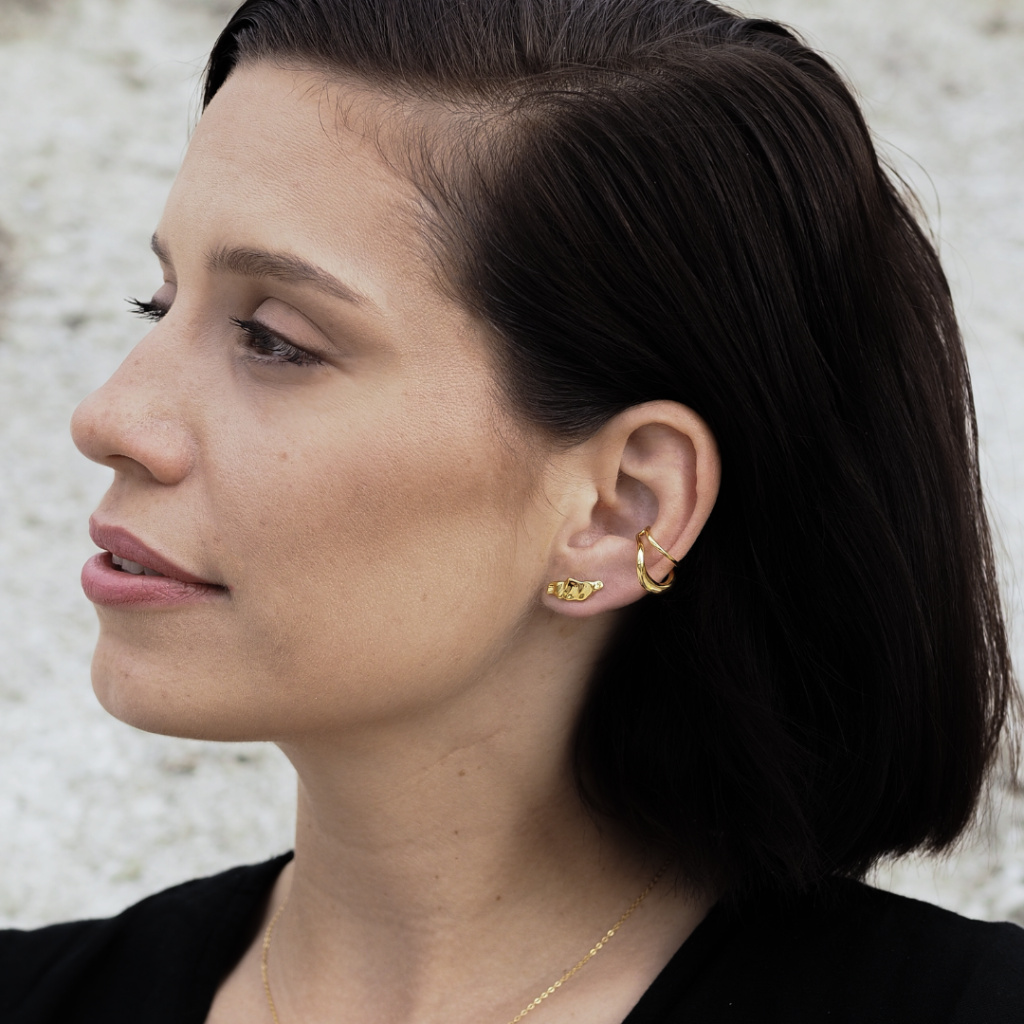 Ear cuff je ze stříbra 925e nebo pozlaceného stříbra. Pozlacené stříbro je náchylnější na údržbu. Doporučujeme omezit kontakt s vodou a kosmetickými prostředky.