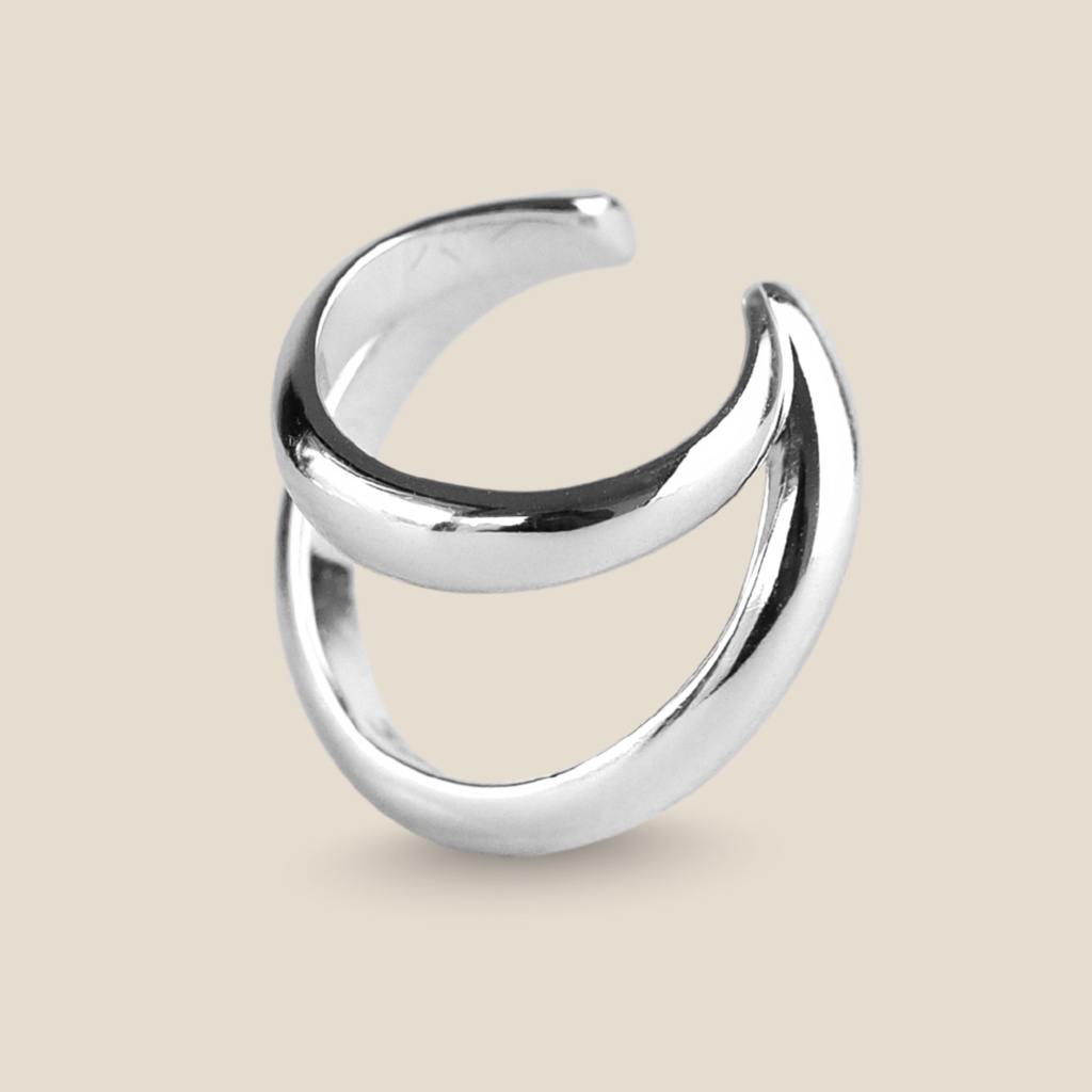 Ear cuff je tvořen dvěma kroužky. První kroužek má průměr 10 mm, druhý kroužek má průměr 13 mmŠířka každého kroužku je 3 mm.