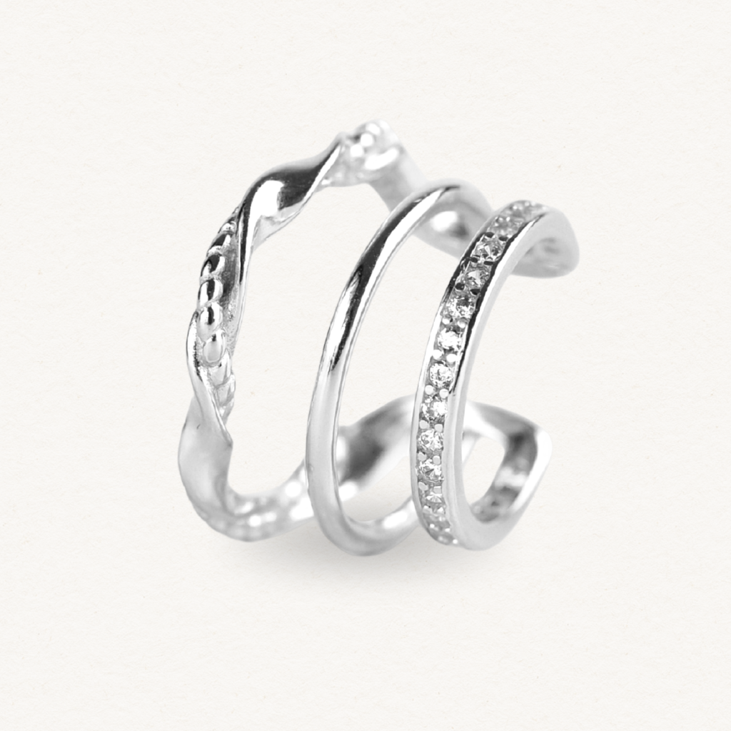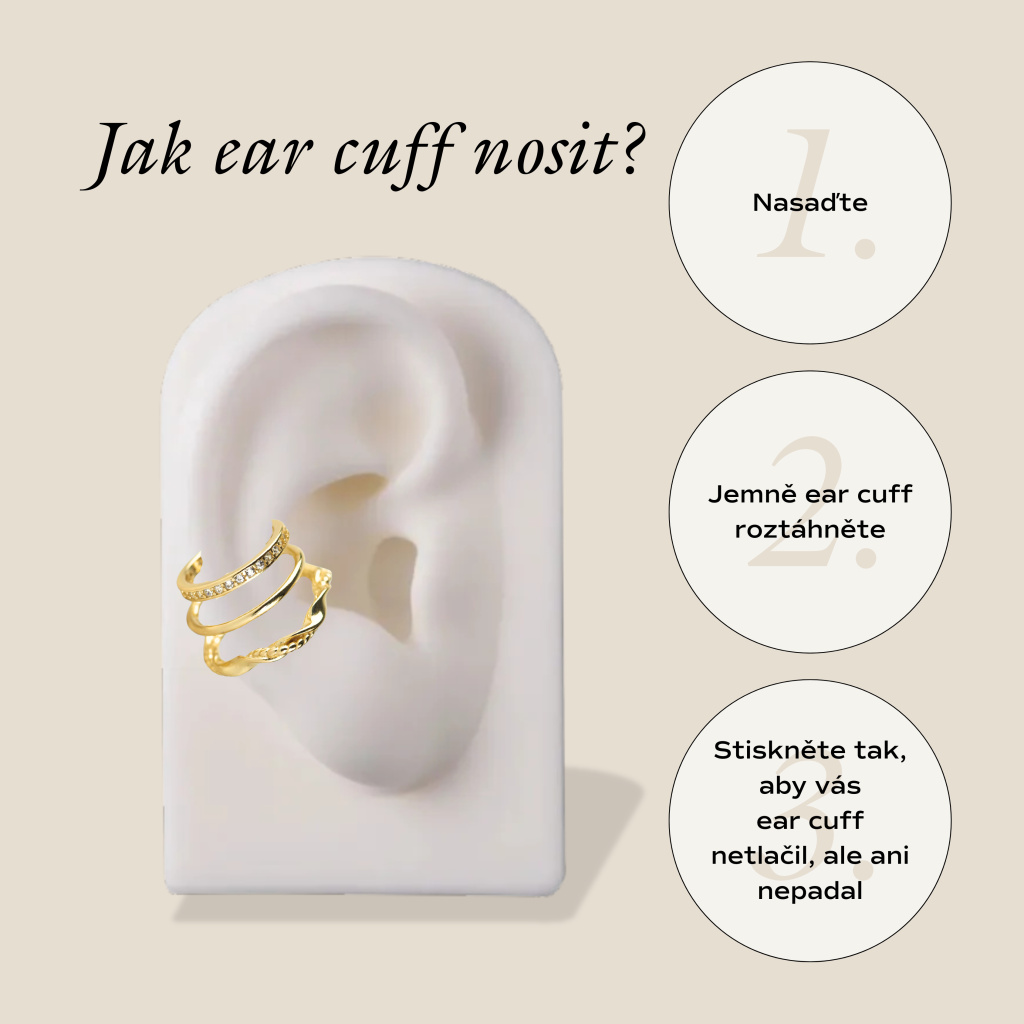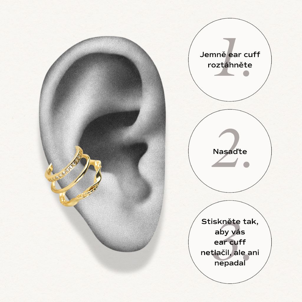 S ear cuffem Trio máte tři nasazovací náušnice v jednom. Nebojte se ho kombinovat s dalšími náušnicemi pro ještě výraznější look.