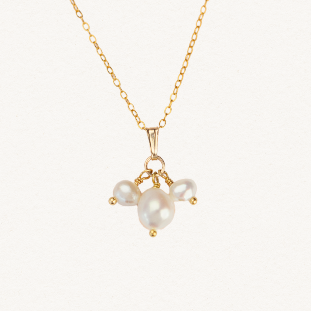 Délka náhrdelníku je uvedena včetně zapínání. Perla je se třemi perličkami dvě o velikosti 3 mm a jedna o velikosti 5 mm. (Perly se mohou velikostí trochu lišit. Žádná vodní perla není stejně veliká).