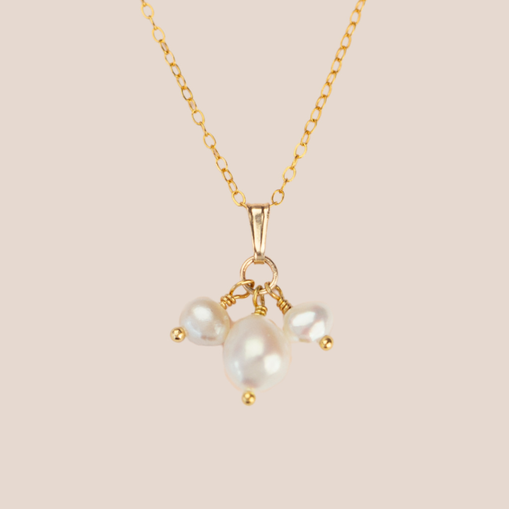 Délka náhrdelníku je uvedena včetně zapínání. Perla je se třemi perličkami dvě o velikosti 3 mm a jedna o velikosti 5 mm. (Perly se mohou velikostí trochu lišit. Žádná vodní perla není stejně veliká).