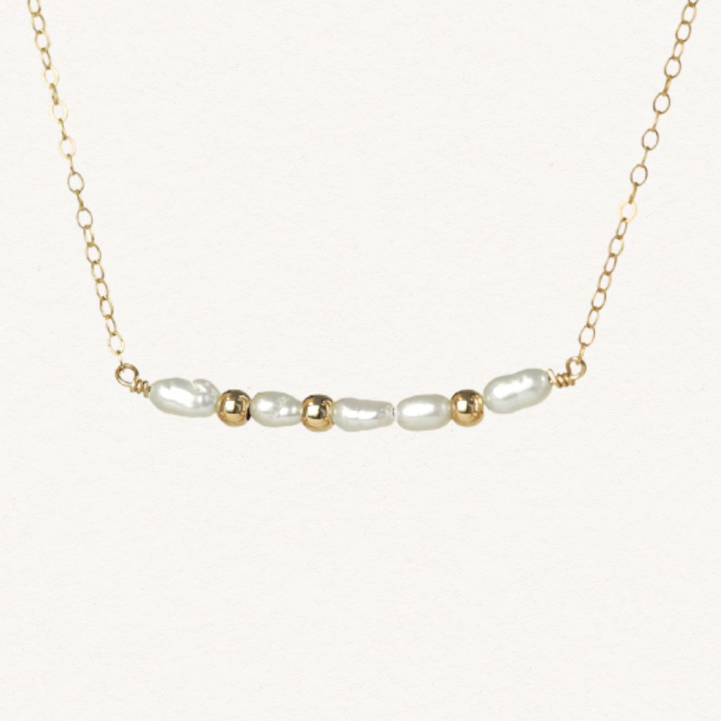 Náhrdelník se skládá z kuliček o velikosti 3 mm a oválných říčních perel o délce 4 mm. Délka náhrdelníku je uvedena včetně zapínání.