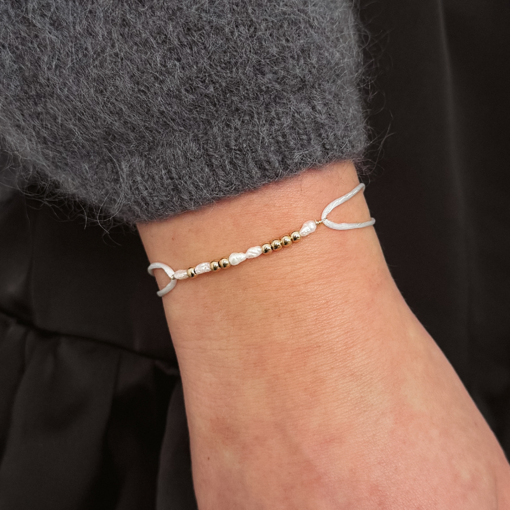 Náramek Morseovka s perlami na šňůrce