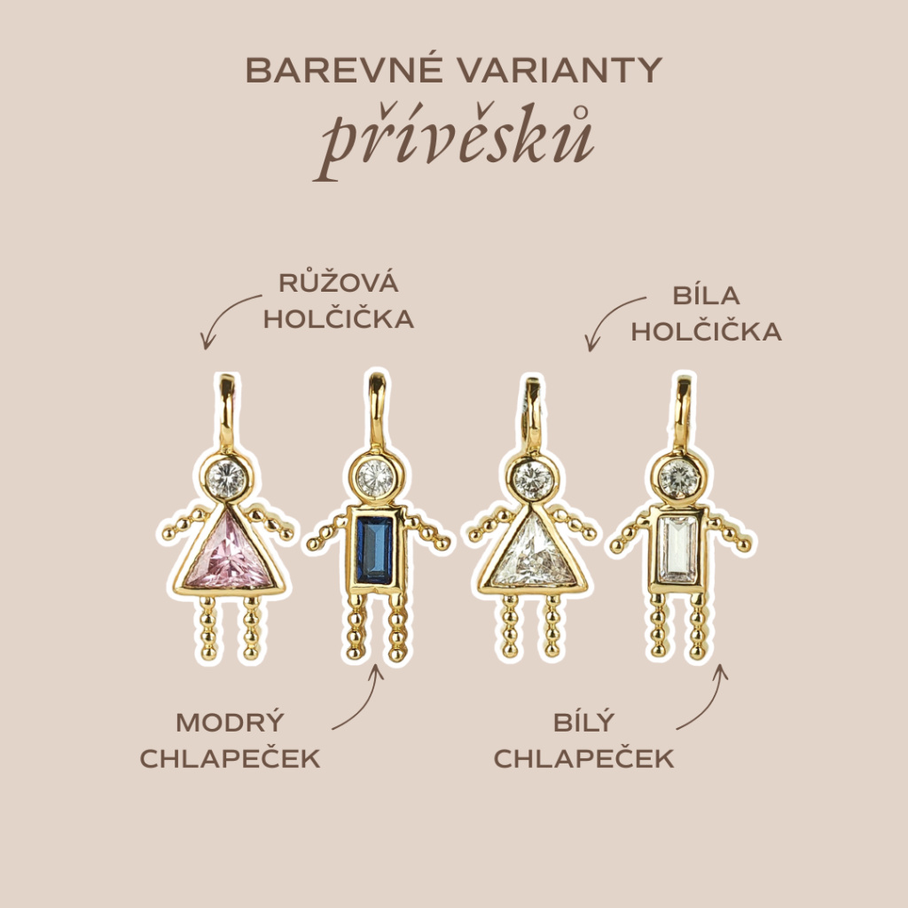 Na výběr máte růžovou nebo bílou holčičku a modrého nebo bílého chlapečka.