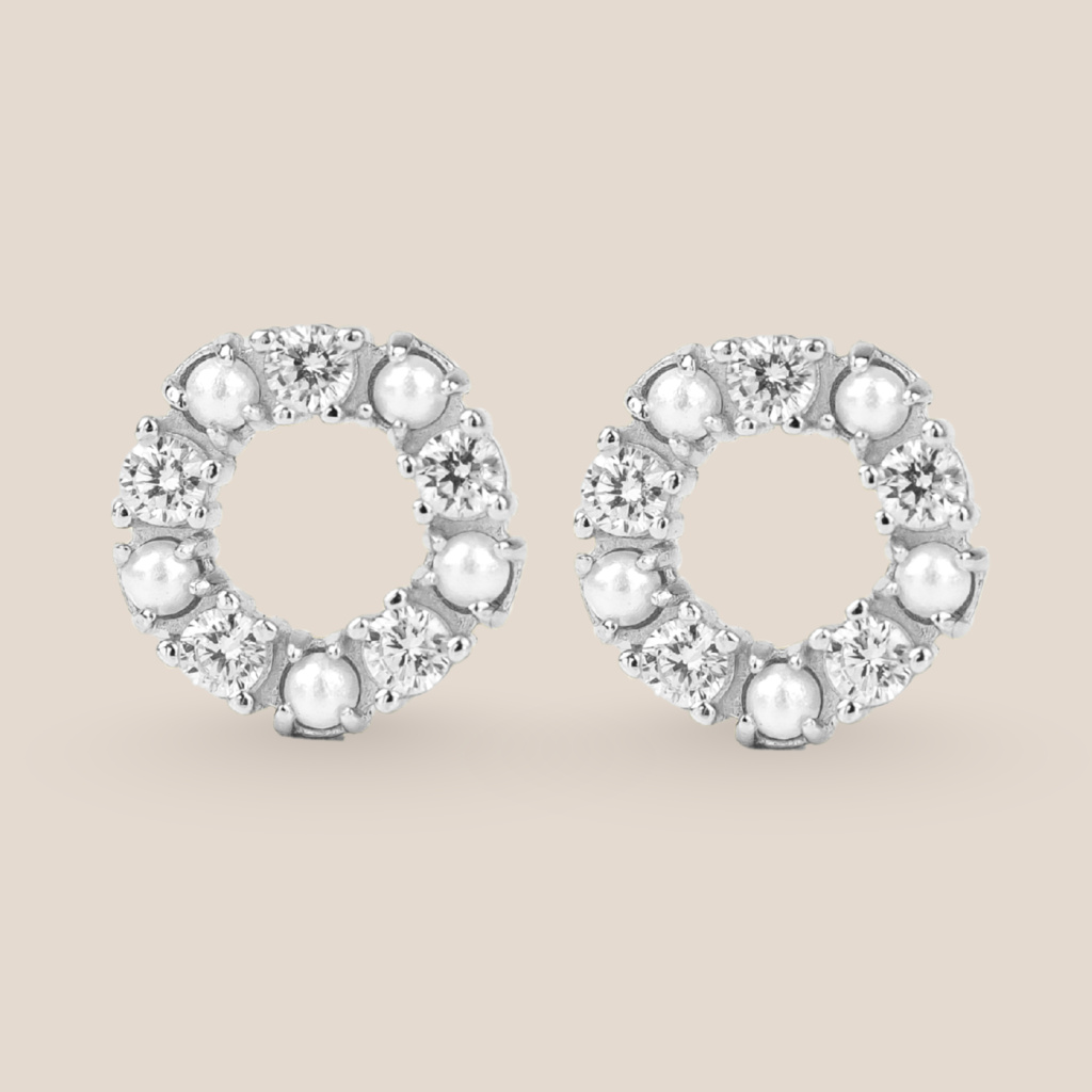Náušnice mají vnější průměr 11 mm a jsou zdobené pěti syntetickými perlami o průměru 2 mm a pěti zirkony o velikosti 2 mm. Tyčinka je dlouhá 10 mm a zapínání je na puzetku.