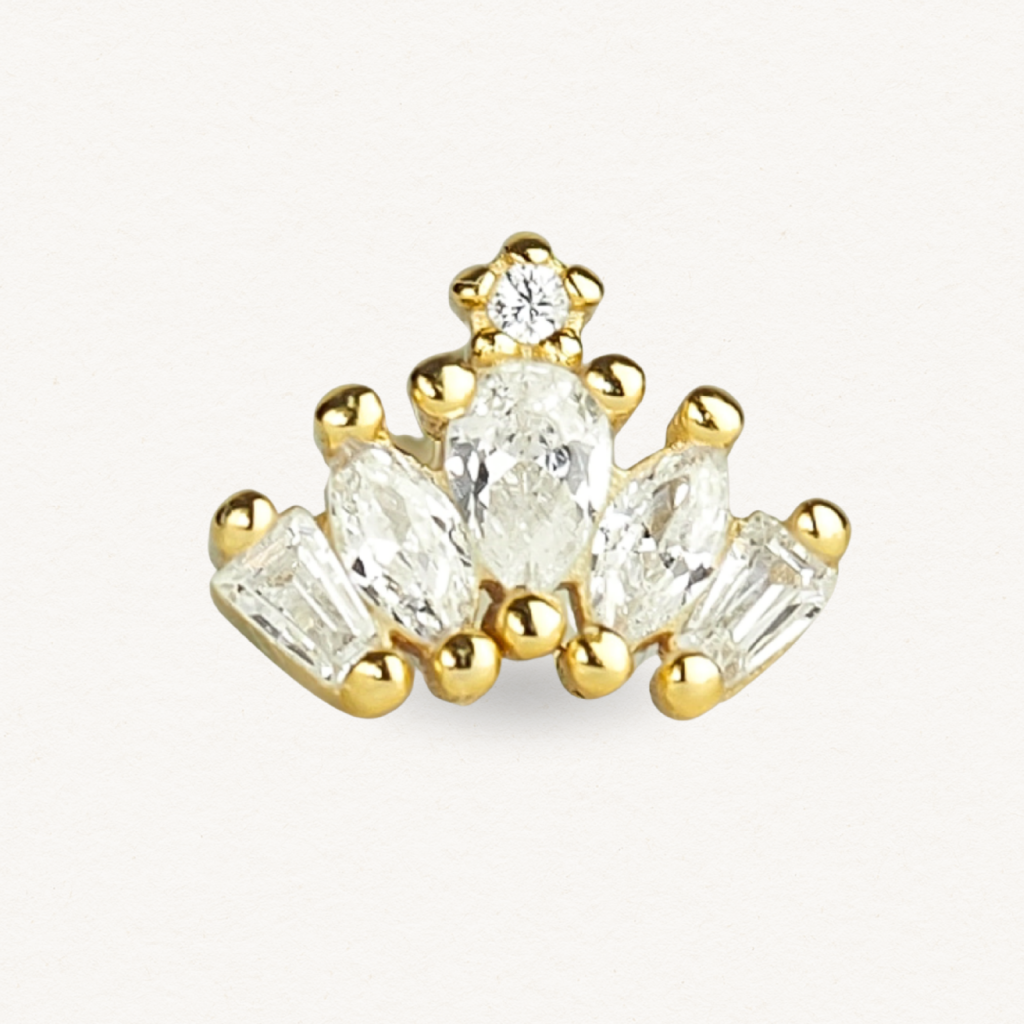 Ozdobná část náušnice má rozměr 8 × 6 mm a je zdobena šesti zirkony. Délka tyčinky je 7 mm. Náušnice má zapínání na kuličku.