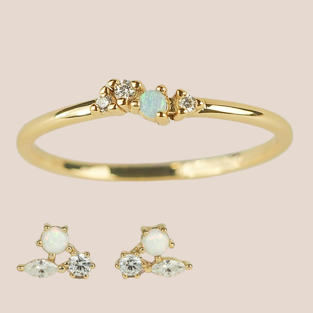 Šperky obsahují imitaci přírodních Opálů a Zirkony.Náušnice mají zavírání typu: puzetka.