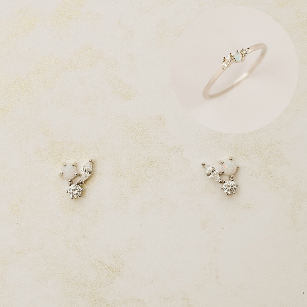 Šperky obsahují imitaci přírodních Opálů a Zirkony.Náušnice mají zavírání typu: puzetka.