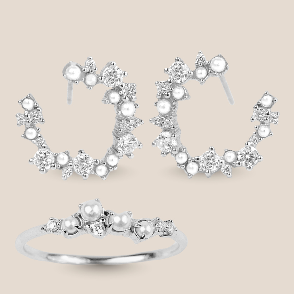 Náušnice o velikosti 16 × 17 mm zdobí osm syntetických perliček a dvanáct zirkonů v různých velikostech a tyčinka je dlouhá 10 mm. Prstýnek doplňuje čtveřice syntetických perliček a čtyři zirkony, přičemž ozdobná část měří 5 × 15 mm a obroučka má šířku 1 mm.